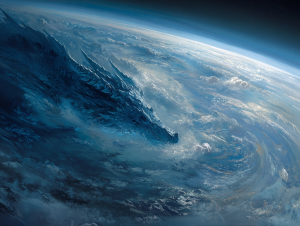 Au centre du monde, Néfer tournait sur elle-même tel un noyau en fusion. Puis Lakérion l’enveloppait, suivant ou contrant son mouvement. Acari baignait la surface, tantôt calme, ou bien déchainée. Efael les enveloppait tous de son atmosphère protectrice ou dévastatrice.